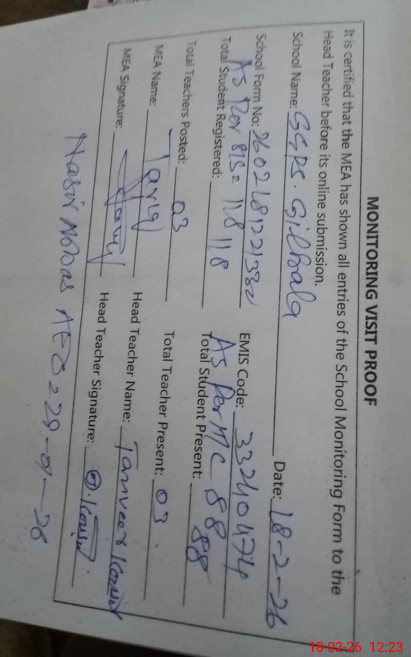 | EMIS Code: 33240474 | Name of School: GGPS BASTI GIL KALA | |||