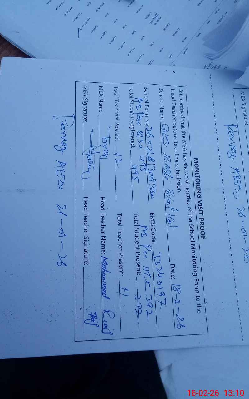 | Attendance Register | Head Teacher | MEA with School | Visit Proof |