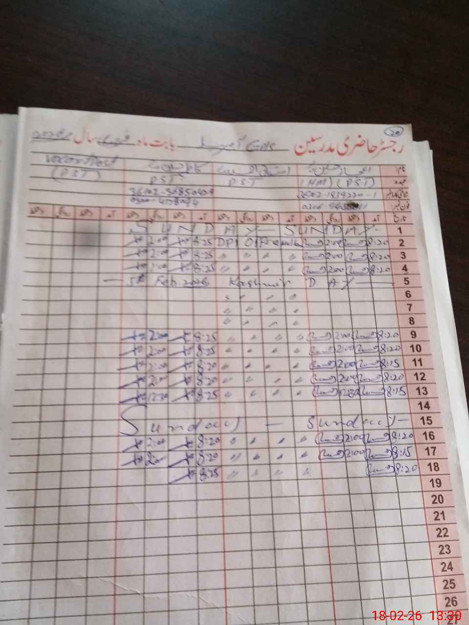| CNIC | Full Name | Designation | R/C | Absence During Last Calender Month |