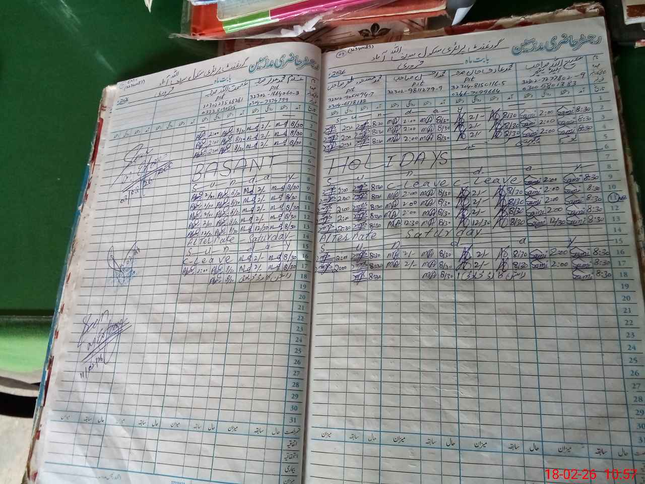 | Leave | Duty | Absent | Maternity | Medical | Ex- Pak |