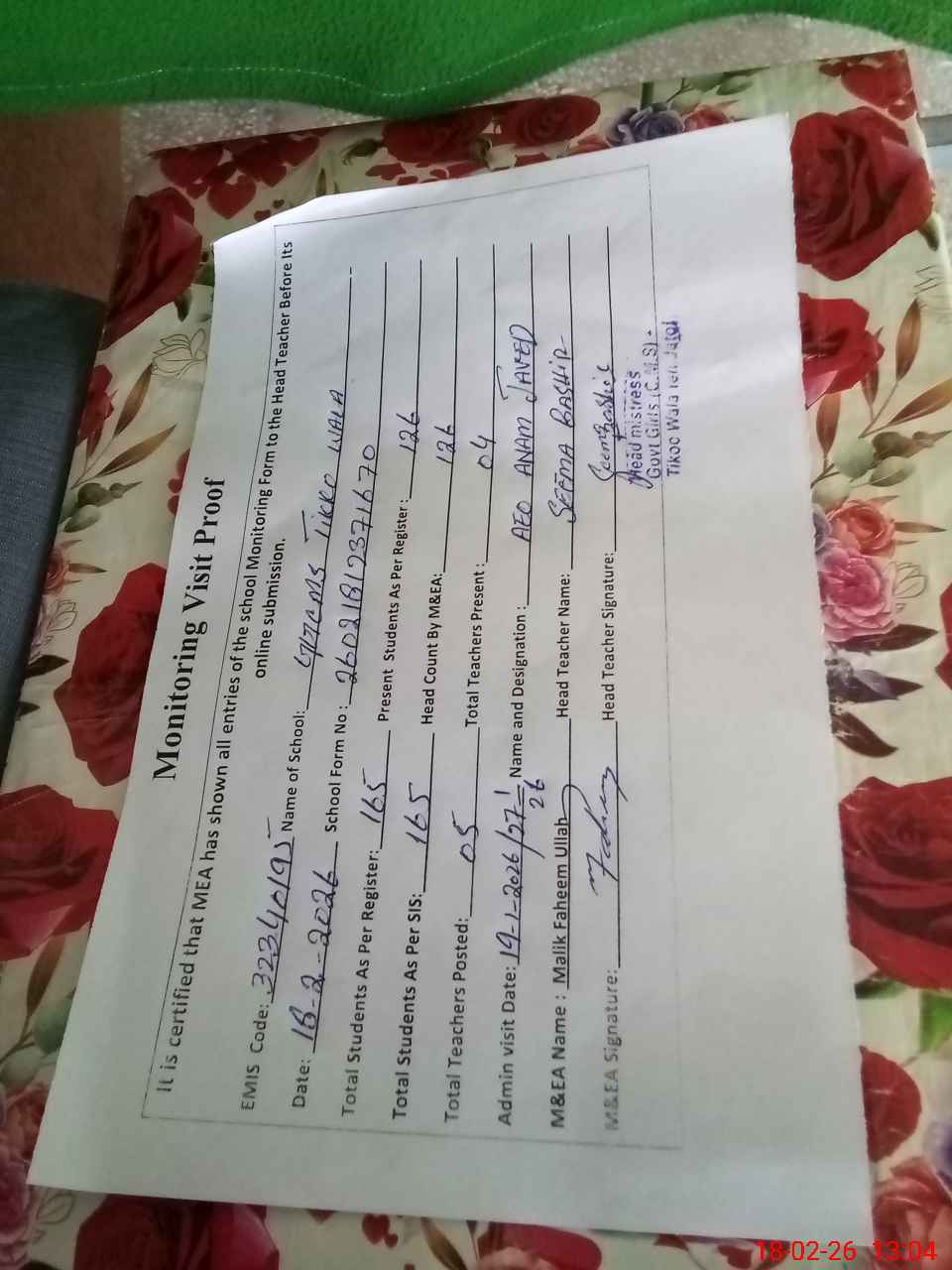 | EMIS Code: 32340195 | Name of School: GGCMS TAKKOO WALA | |||