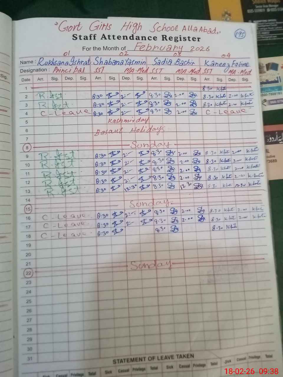 | Name: AM**** KH**** Designation: (School Headmaster's/Headmistress's) SST (GEN ) Phone/Cell Number: 03**** |