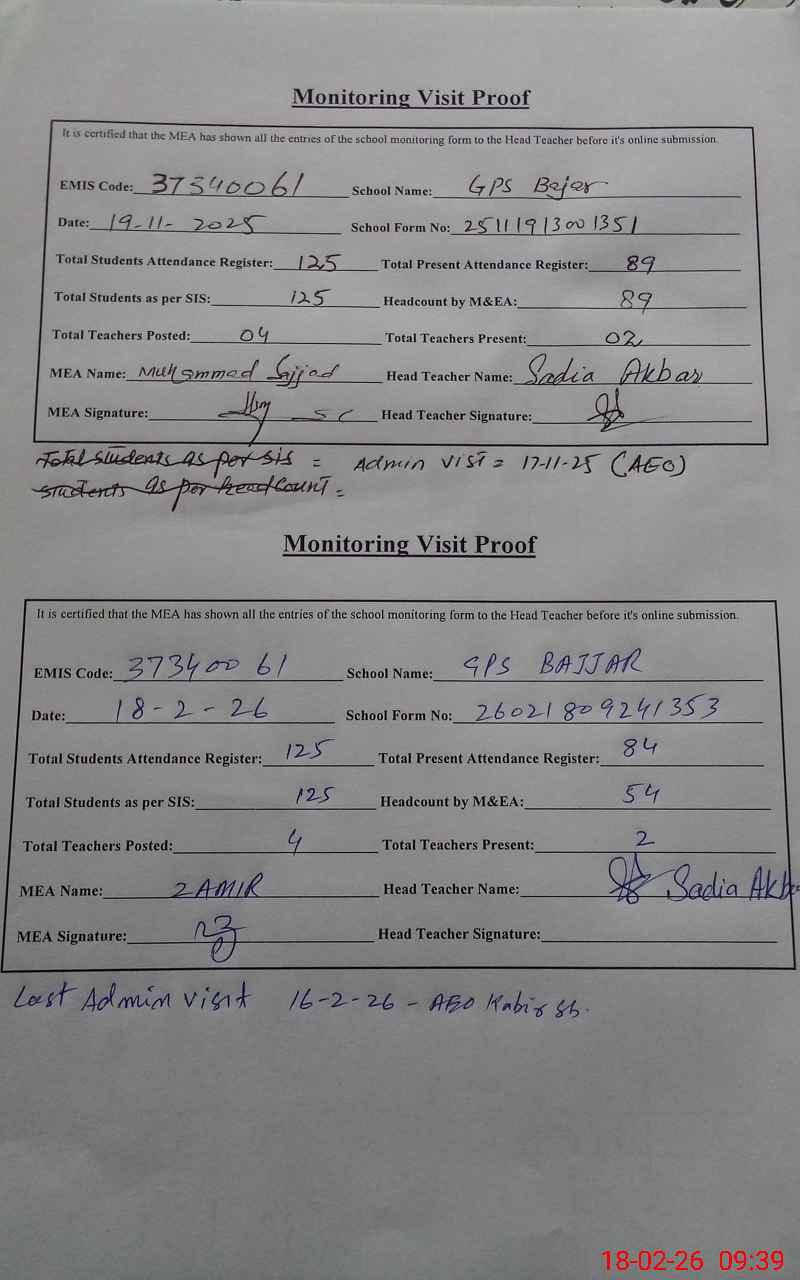 | EMIS Code: 37340061 | Name of School: GPS BAJJAR | |||