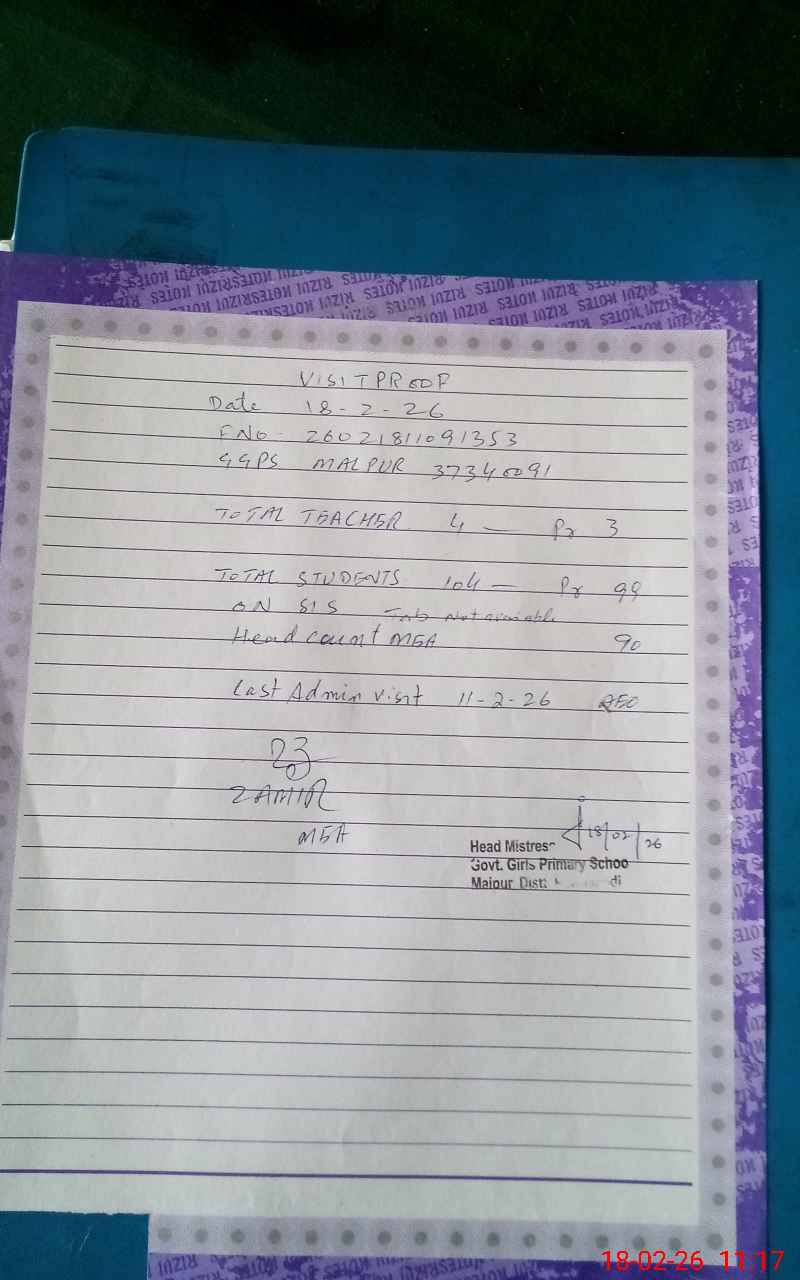 | EMIS Code: 37340091 | Name of School: GGPS MALPUR | |||