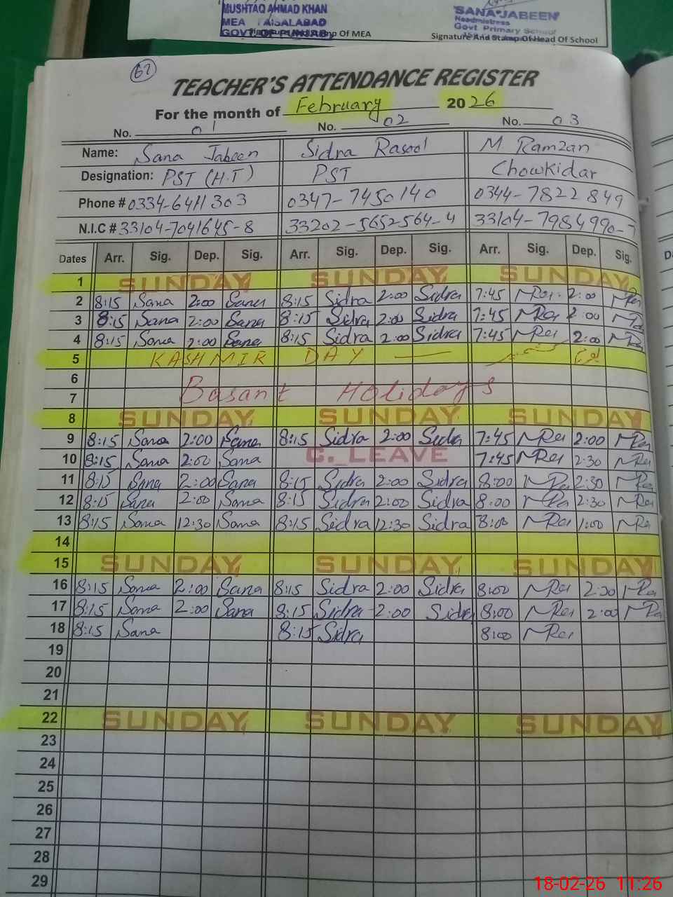 | Name: SA**** JA**** Designation: (School Headmaster's/Headmistress's) PST Phone/Cell Number: 03**** |