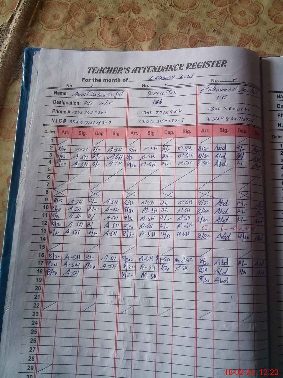 | Name: AB**** SH**** SA**** Designation: (School Headmaster's/Headmistress's) PST Phone/Cell Number: 03**** |