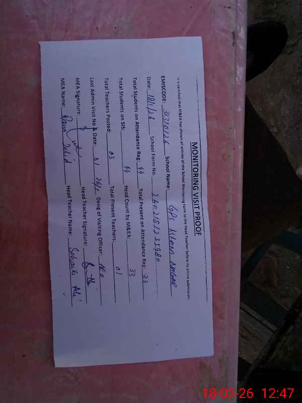 | EMIS Code: 31310126 | Name of School: GPS ISLAM NAGAR | |||
