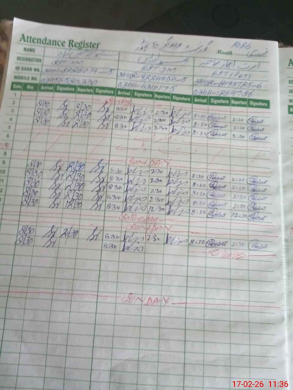 | 00**** | Ak**** Sa**** | NQ | 0 | 0 | 0 | 0 | 0 | 0 | 0 | 0 | 0 | Absent (Un-Authorized) | |