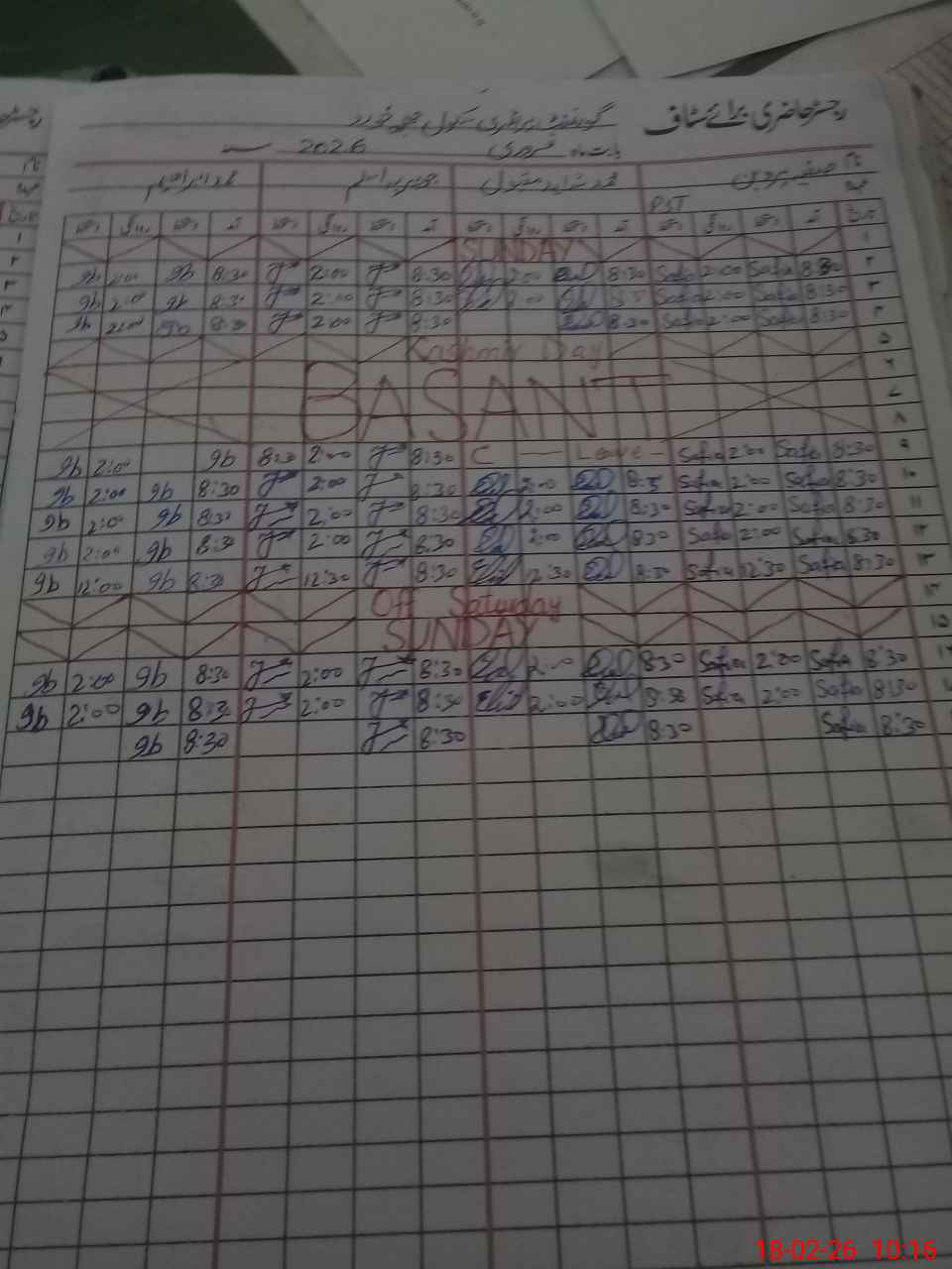 | No. of Students Present - Female | 0 | 0 | 0 | 0 | 0 | 0 | 0 | 0 | ||||||||