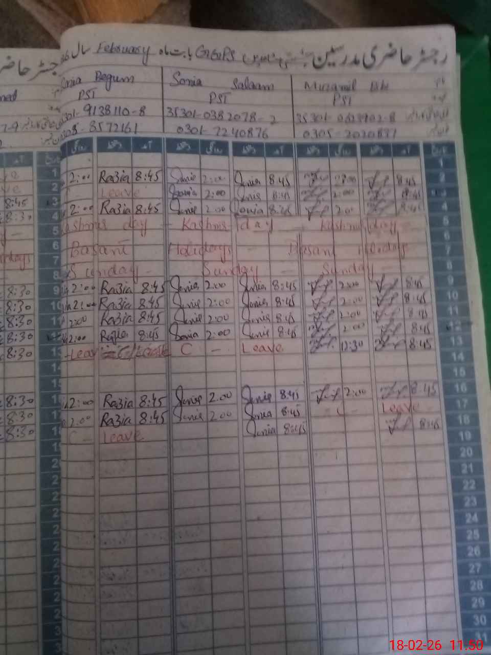 | Name: Mu**** Bi**** Designation: (School Headmaster's/Headmistress's) PST Phone/Cell Number: 03**** |