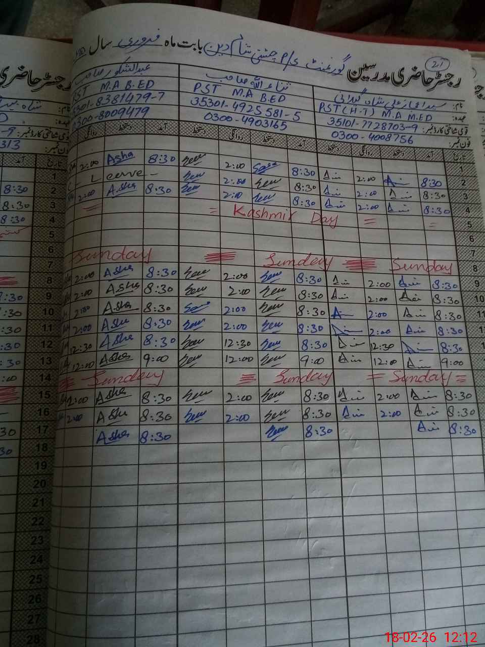 | Name: SY**** EJ**** AL**** SH**** Designation: (School Headmaster's/Headmistress's) PST Phone/Cell Number: 03**** |