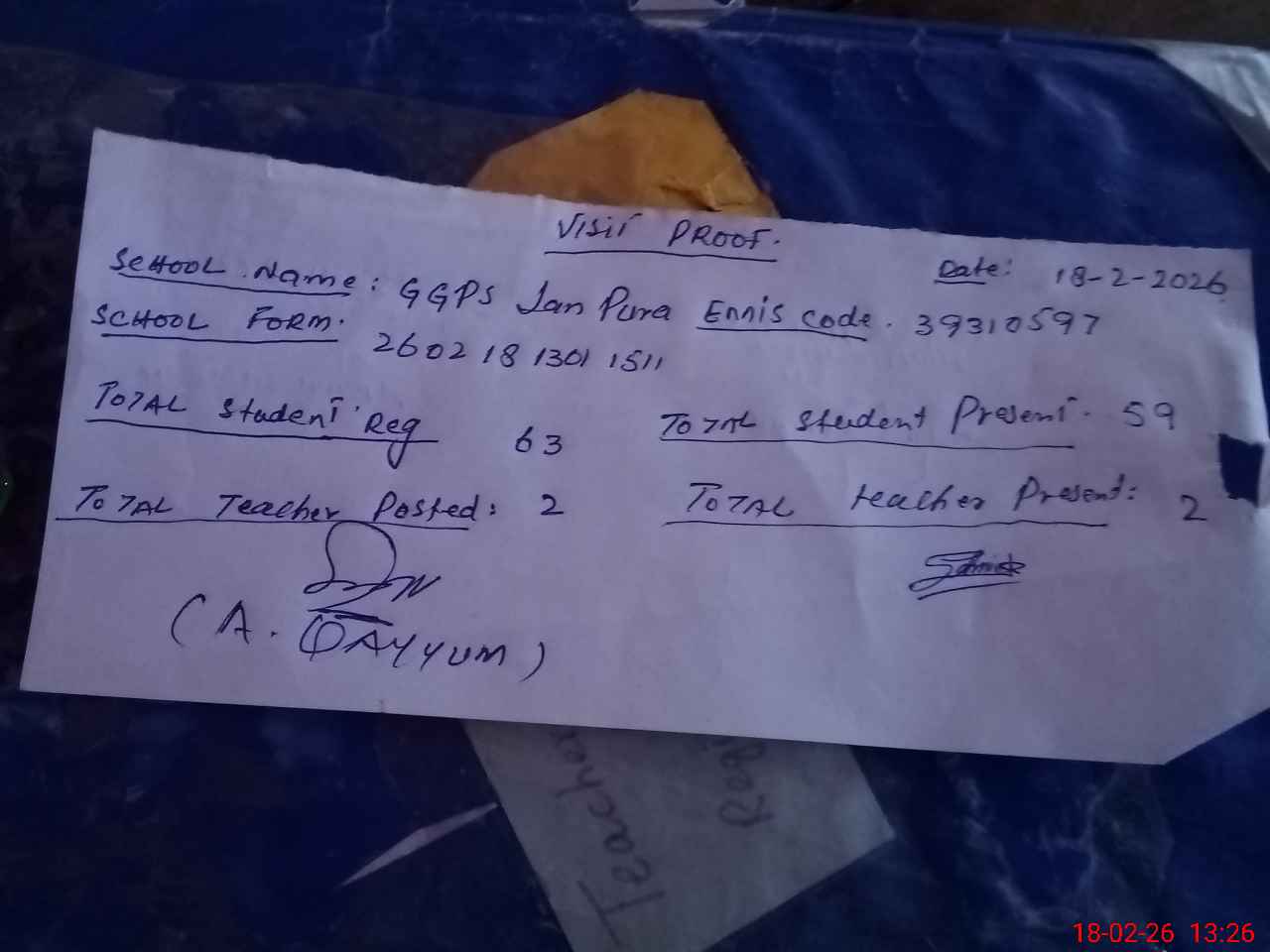 | EMIS Code: 39310597 | Name of School: GGPS JAN PURA | |||