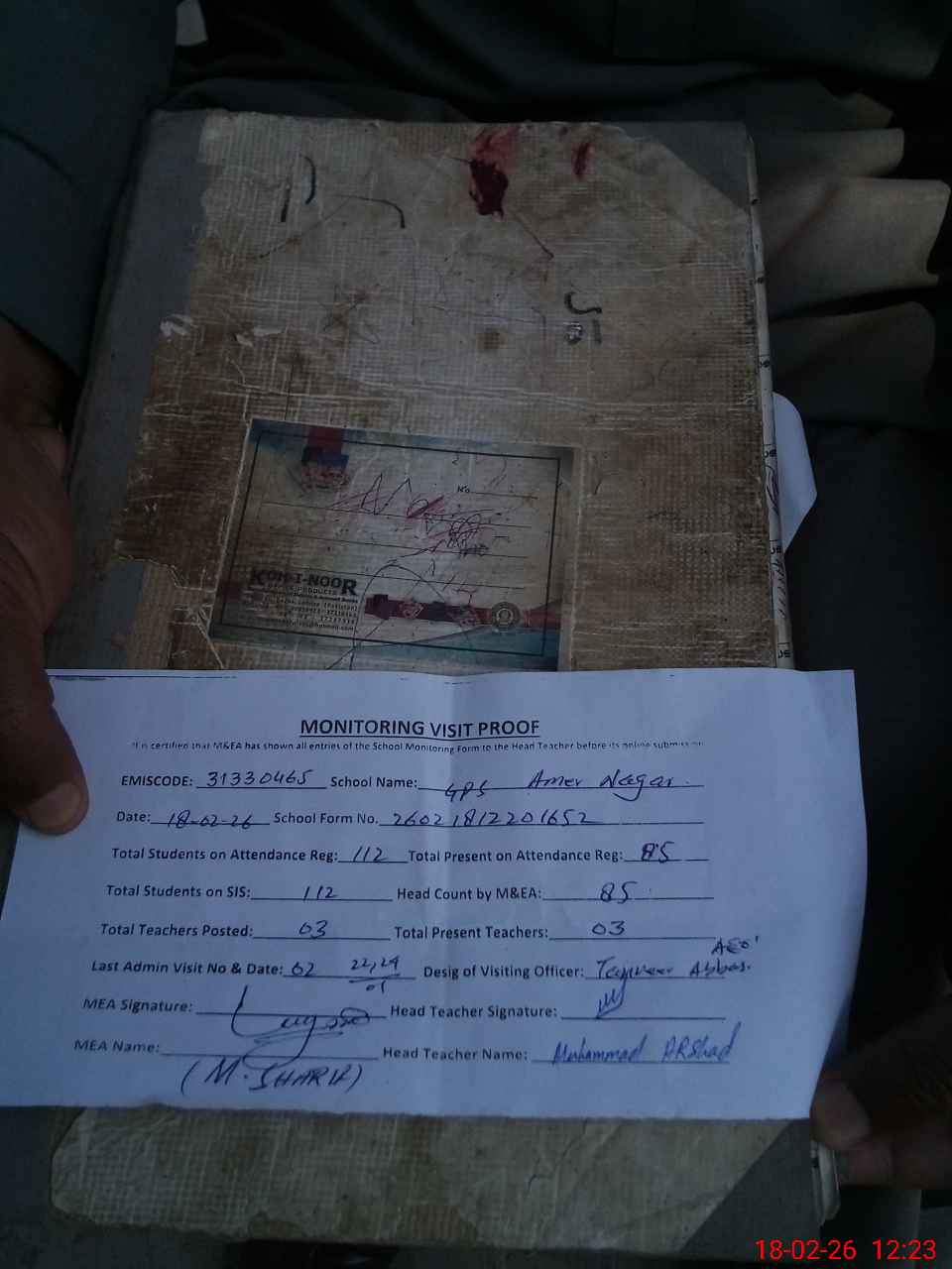 | Attendance Register | Head Teacher | MEA with School | Visit Proof |