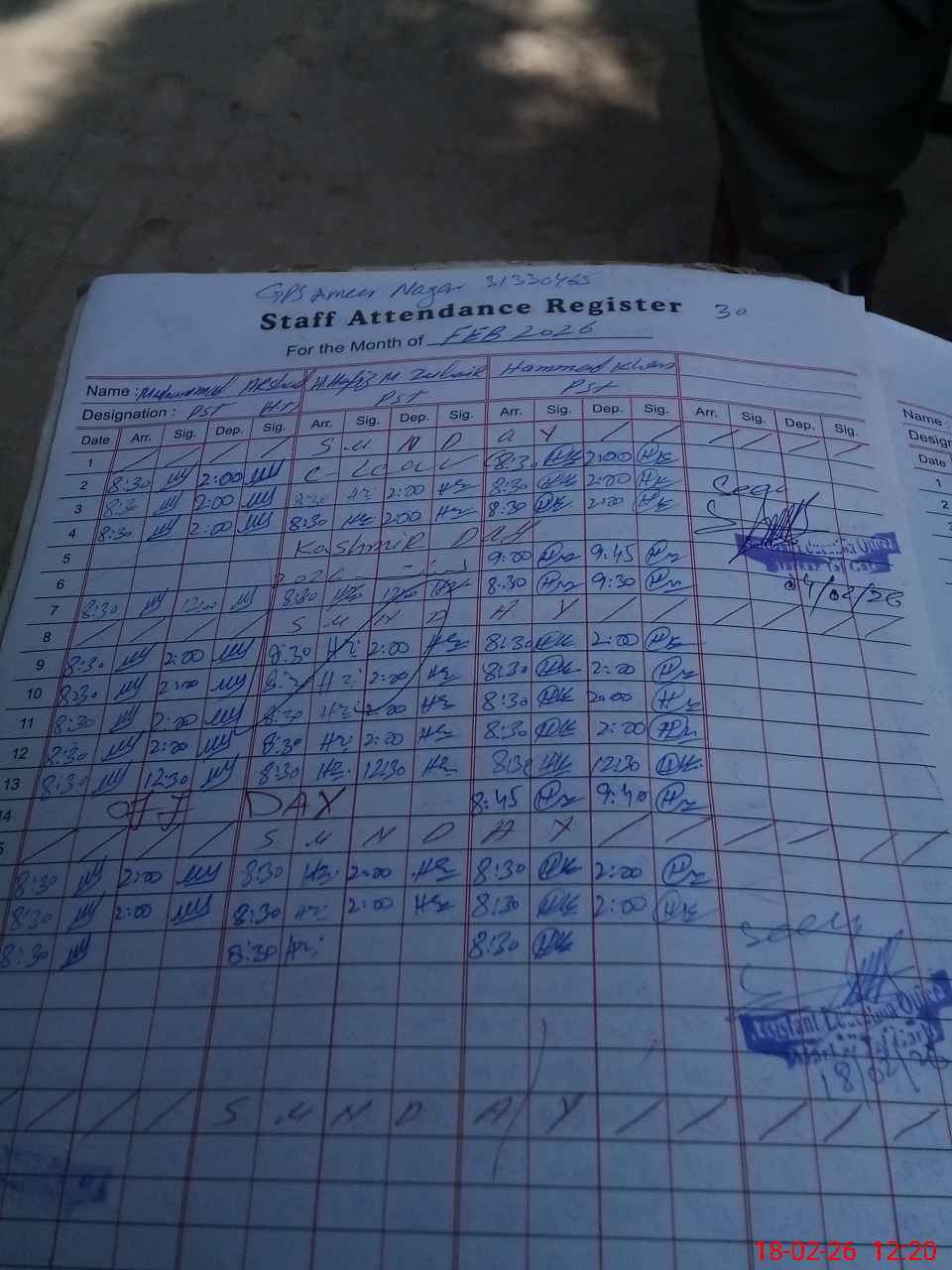| Name: Mu**** Ar**** Designation: (School Headmaster's/Headmistress's) PST/PTC/JV Phone/Cell Number: 03**** |