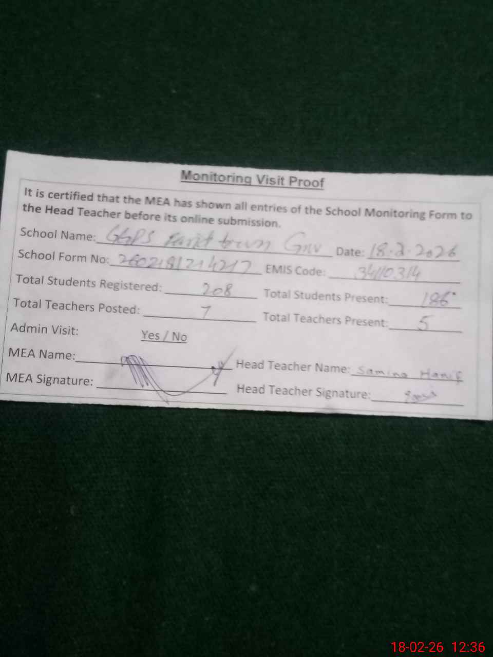 | EMIS Code: 34110314 | Name of School: GGPS FARID TOWN GUJRANWALA | |||