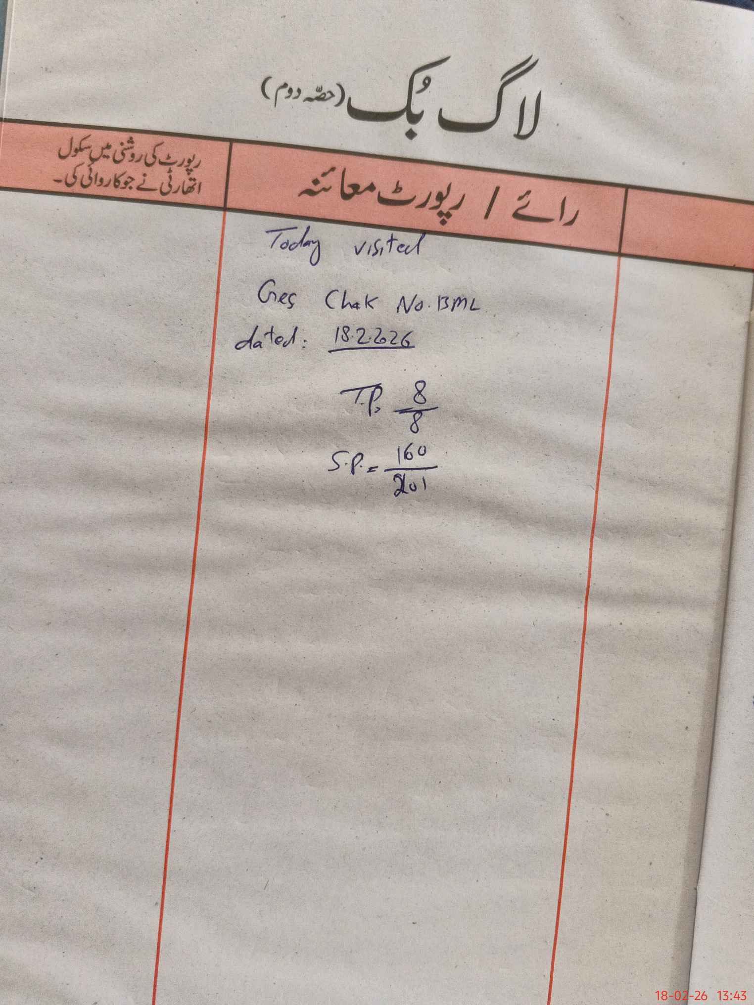 | EMIS Code: 38330093 | Name of School: GES CHAK NO 13 ML | |||