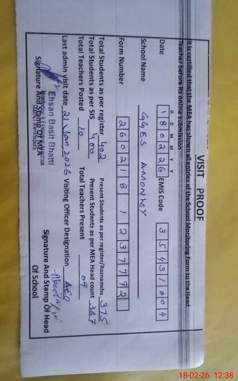 | Certified that this School was Inspected by the Undersigned MEA/DMO Today and the Information Stated Above is as Per Record. | |||||