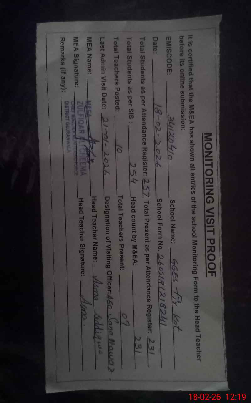| EMIS Code: 34120410 | Name of School: GGES PIR KOT | |||