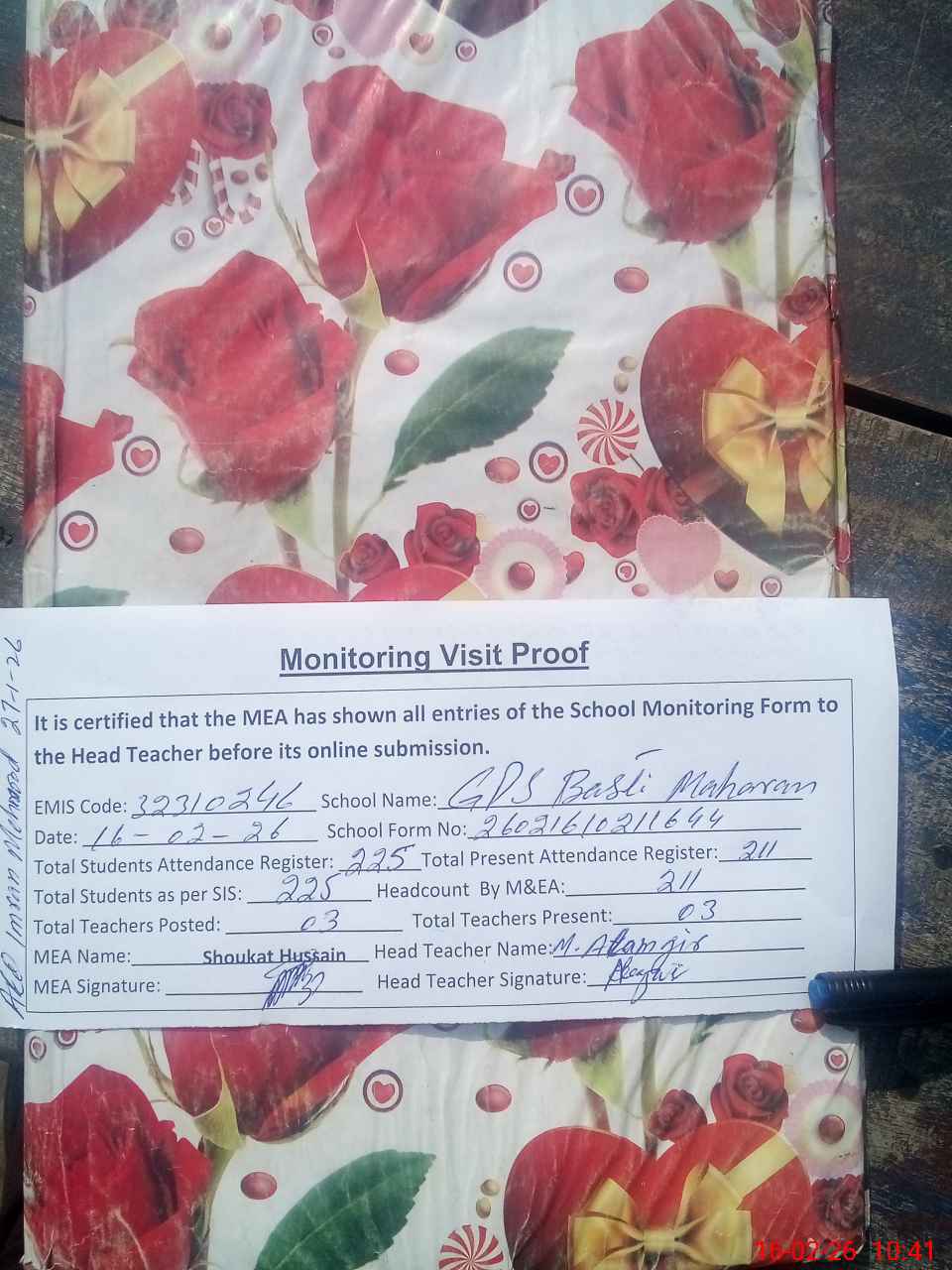 | EMIS Code: 32310246 | Name of School: GPS BASTI MAHARAN | |||