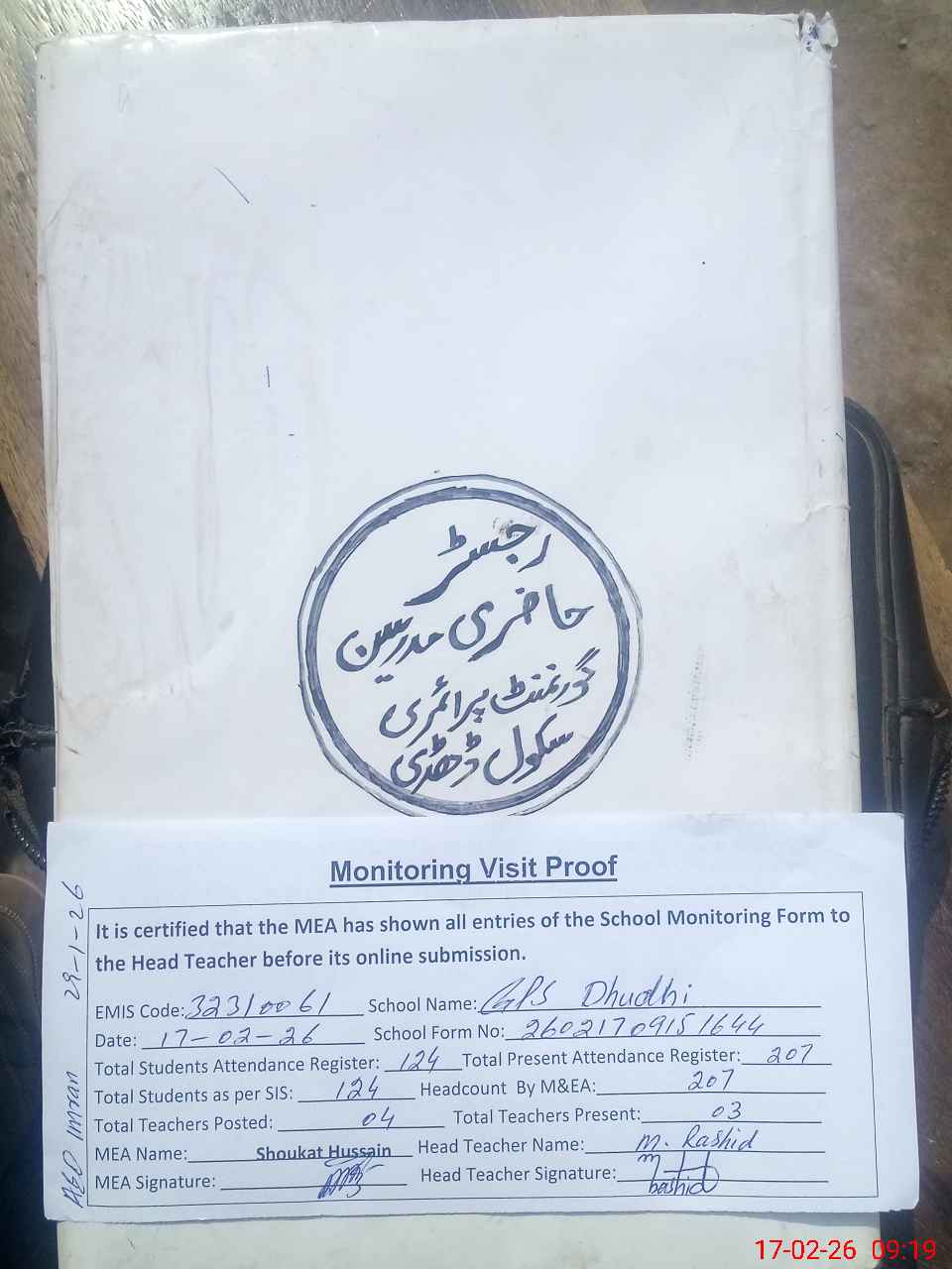 | EMIS Code: 32310061 | Name of School: GPS DHUDHI | |||