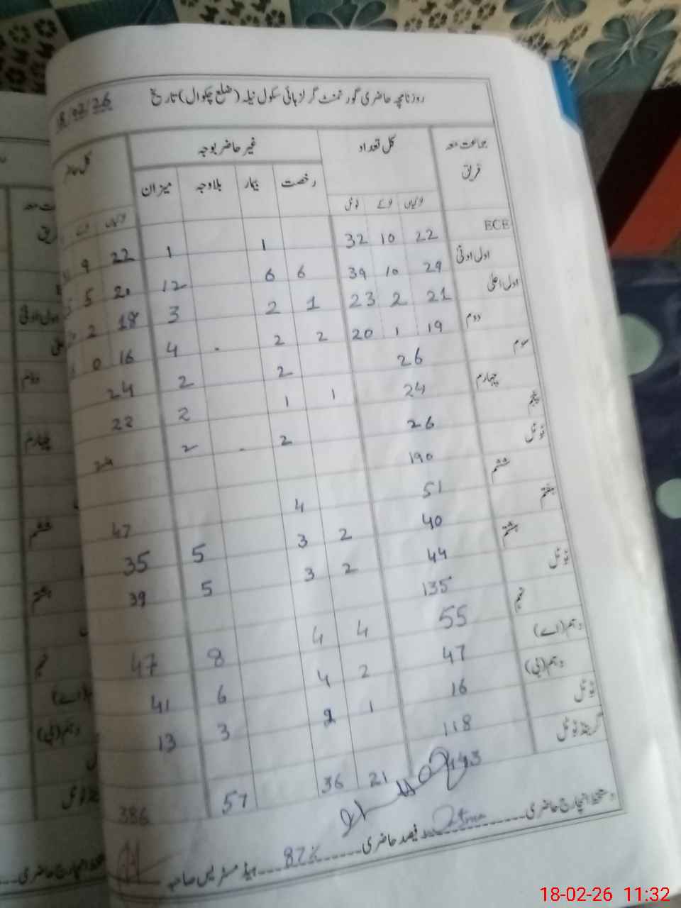 | Total no. of Classrooms: 18 No. of Classrooms Used for Teaching: 13 No. of Classrooms Storing Old Furniture, FTBs, etc: 0Comments if Any: 0 |