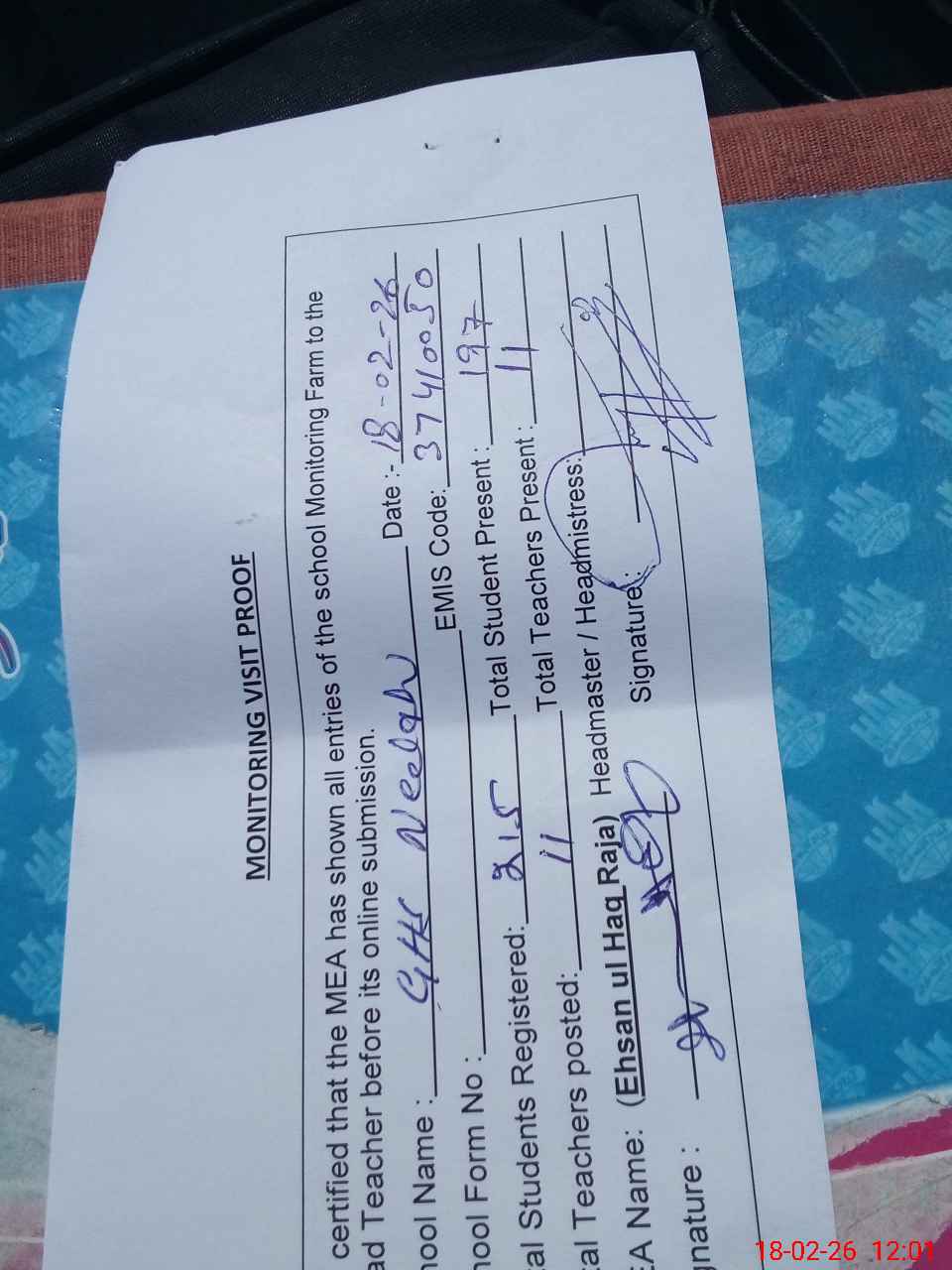 | EMIS Code: 37410050 | Name of School: GHS NEELA | |||