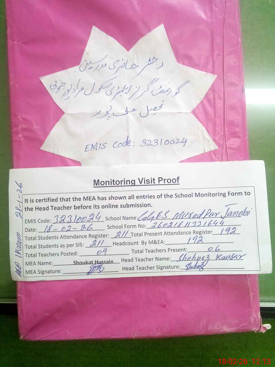 | EMIS Code: 32310024 | Name of School: GGES MURAD PUR JANUBI | |||