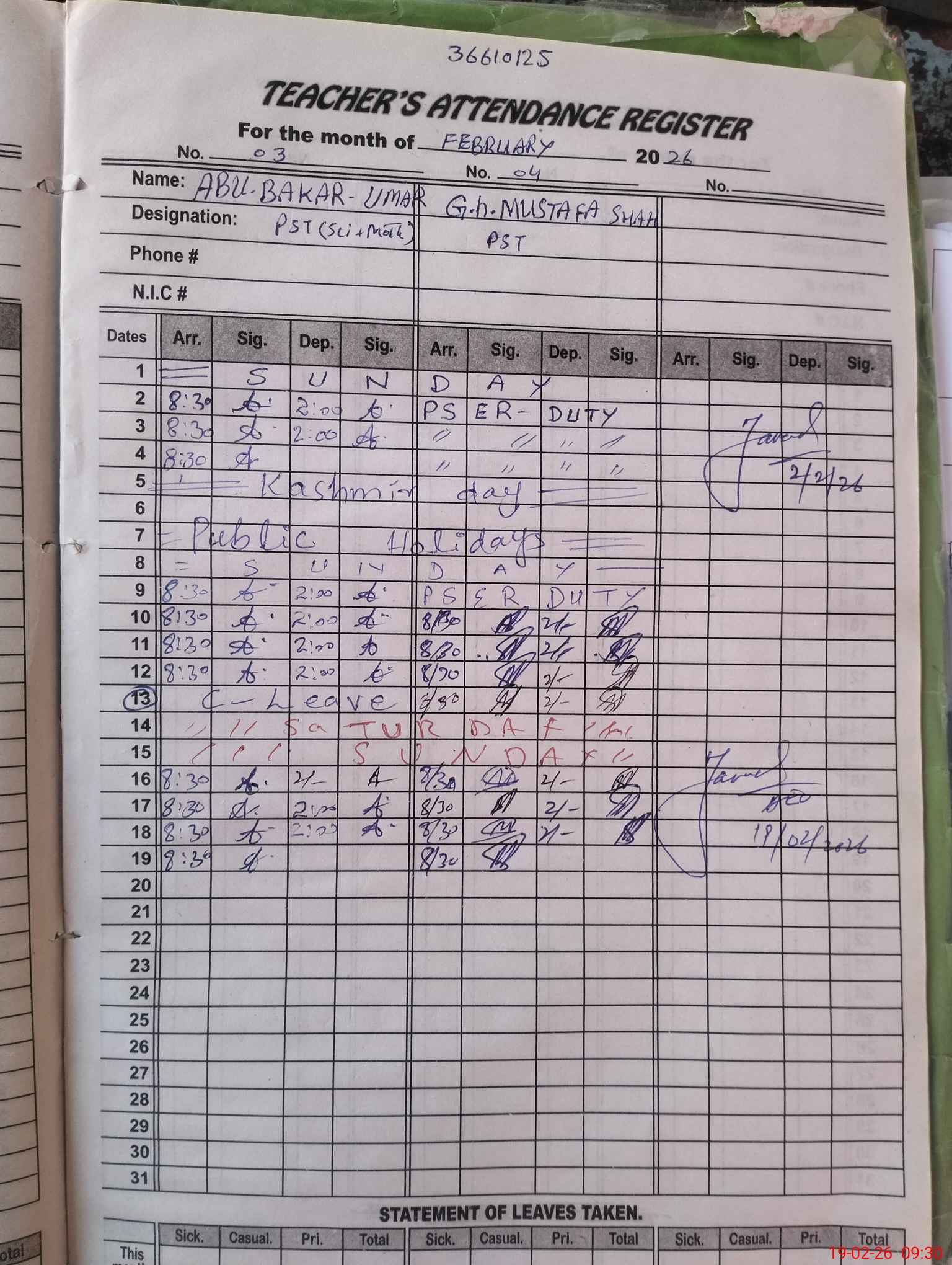 | Name: MU**** Ak**** Designation: (School Headmaster's/Headmistress's) PsT Phone/Cell Number: 03**** |