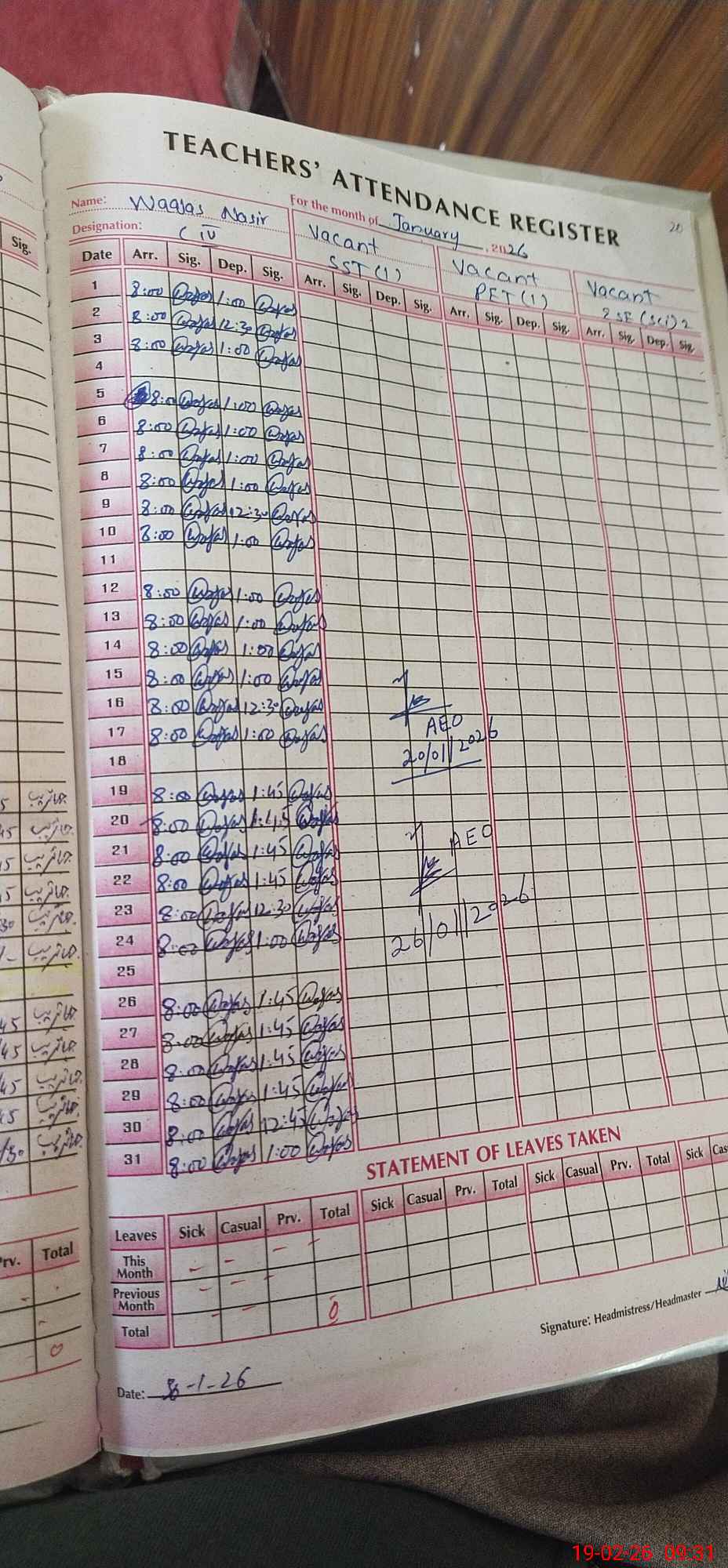 | Attendance Register | Head Teacher | MEA with School | Visit Proof |