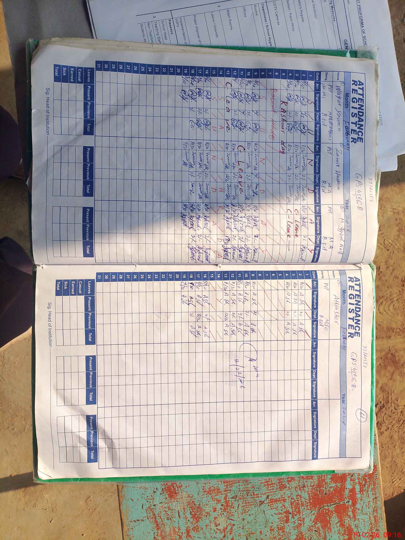| Attendance Register | Head Teacher | MEA with School | Visit Proof |