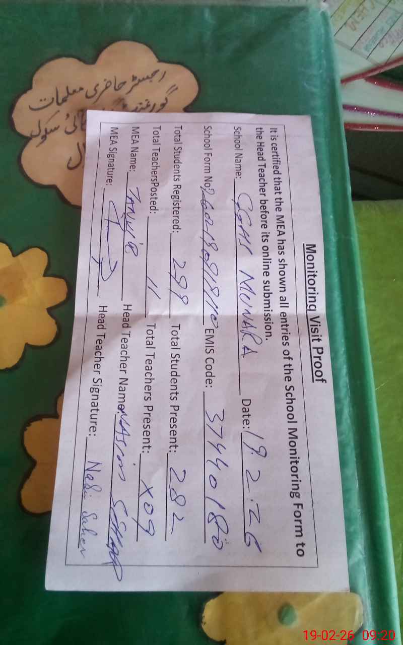 | Attendance Register | Head Teacher | MEA with School | Visit Proof |