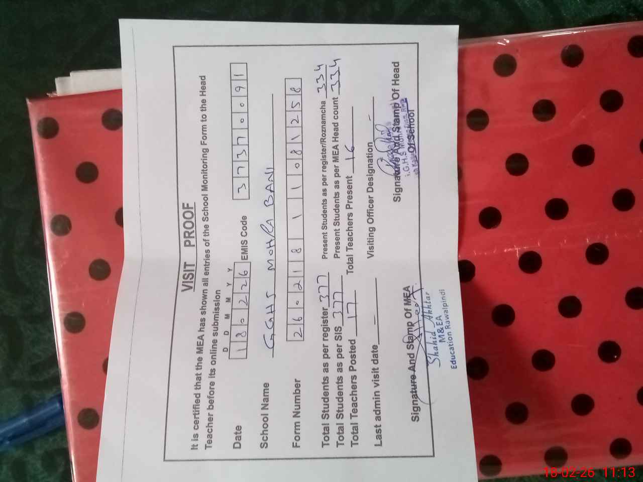 | EMIS Code: 37370091 | Name of School: GGHS MOHRA BANI | |||