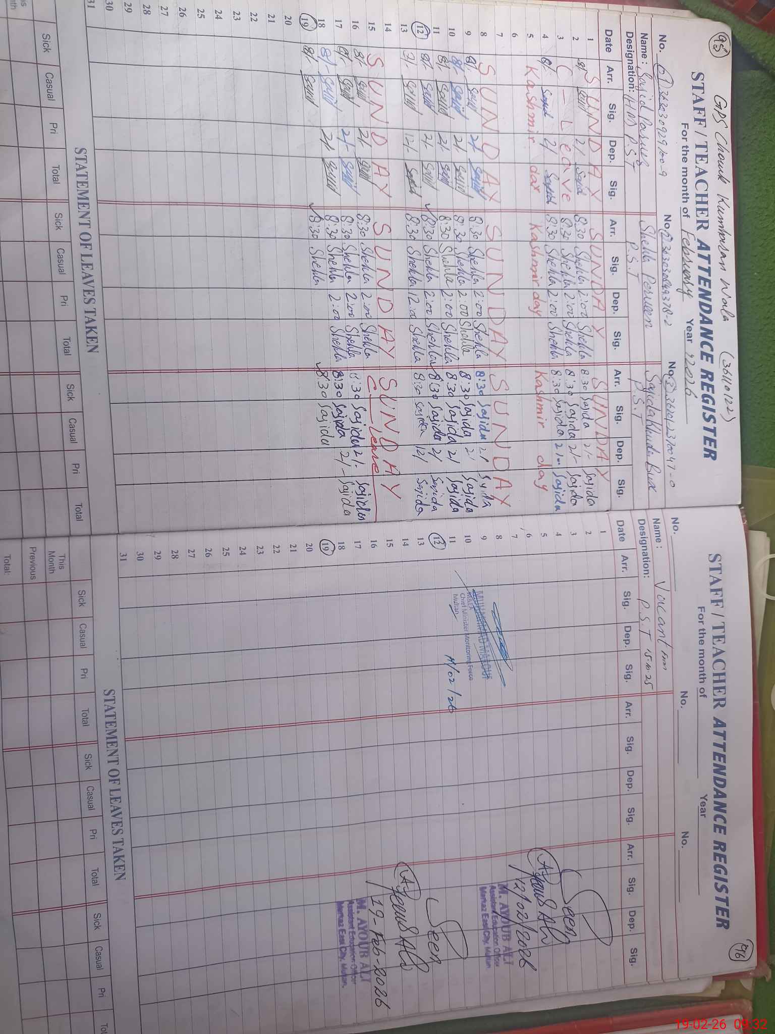| Name: SA**** PE**** Designation: (School Headmaster's/Headmistress's) PST Phone/Cell Number: 03**** |