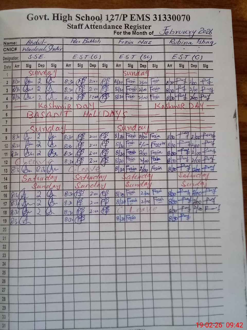 | Name: Ab**** Wa**** Sh**** Designation: (School Headmaster's/Headmistress's) SST(Sci Math) Phone/Cell Number: 03**** |