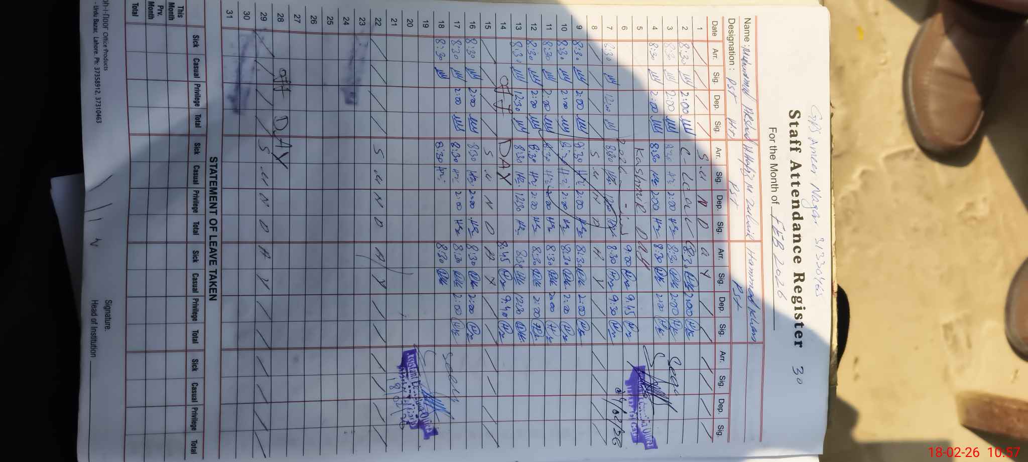 | Name: Mu**** Ar**** Designation: (School Headmaster's/Headmistress's) PST/PTC/JV Phone/Cell Number: 03**** |