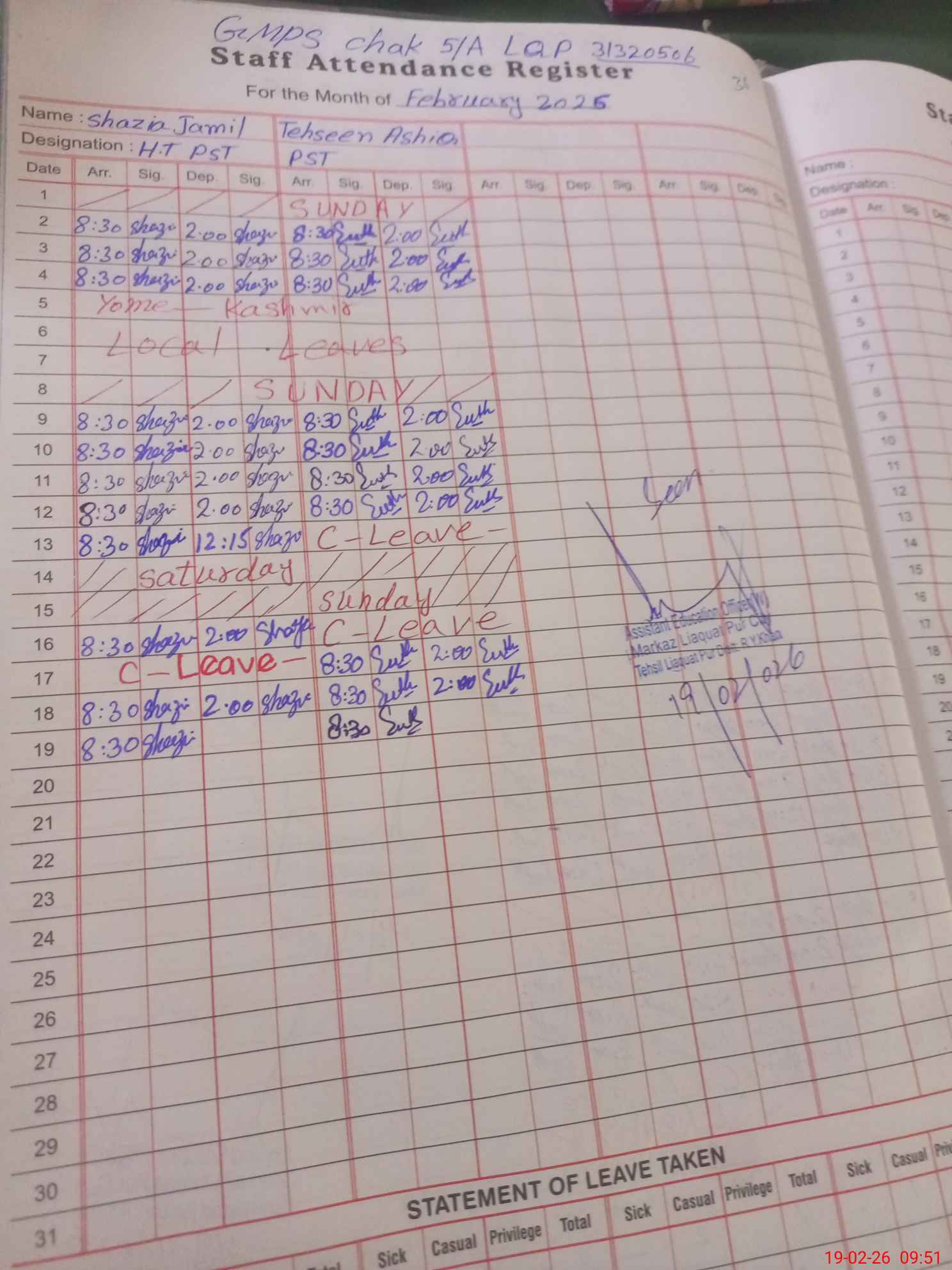 | Leave | Duty | Absent | Maternity | Medical | Ex- Pak |