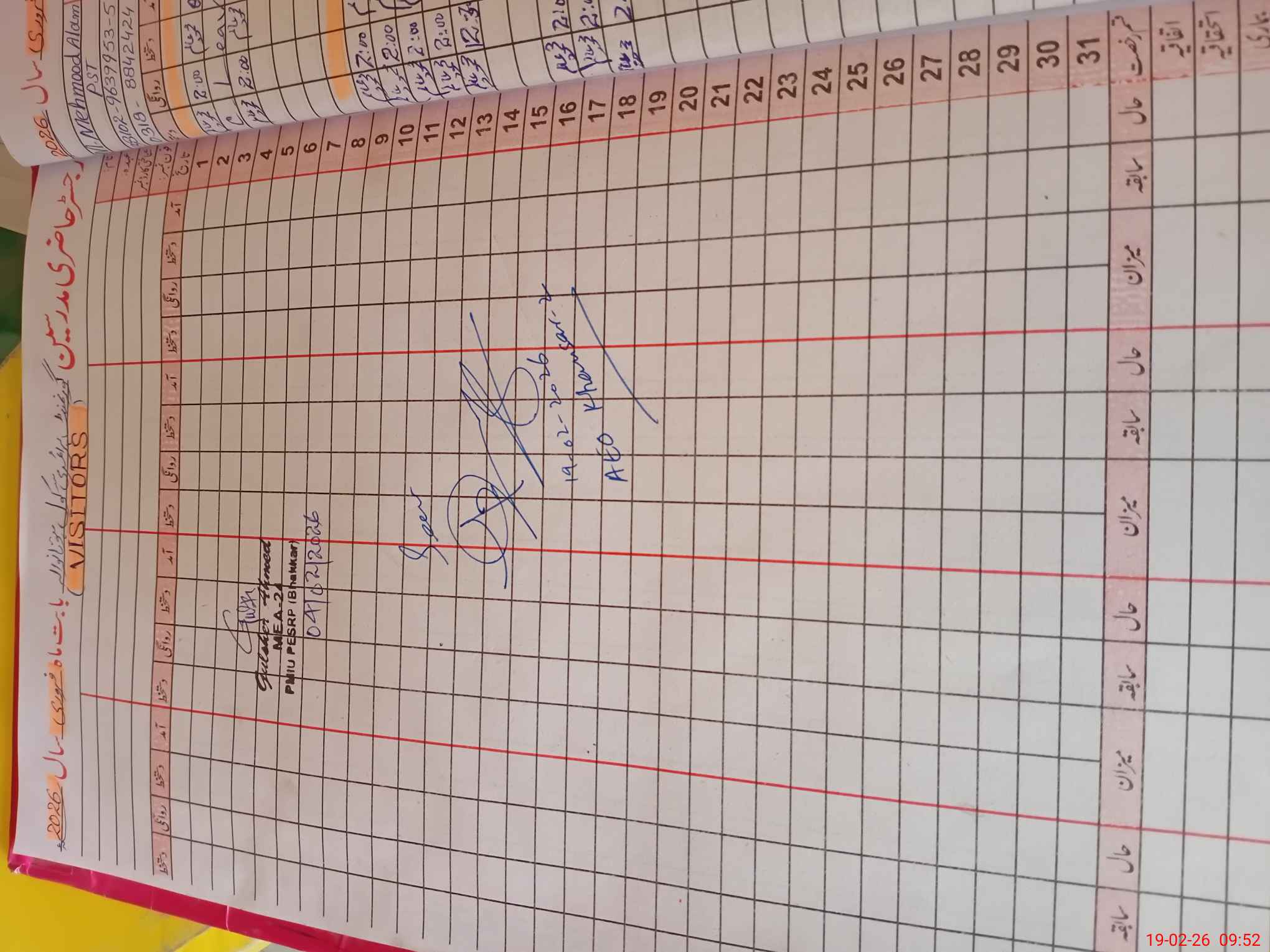 | Name of AEO: | AEO Contact No.: | MEA Phone#: 03**** | ||