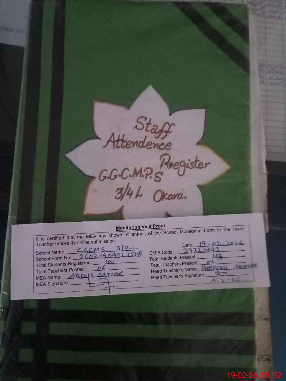 | EMIS Code: 39320643 | Name of School: GGCMS CHAK NO 3/4-L | |||