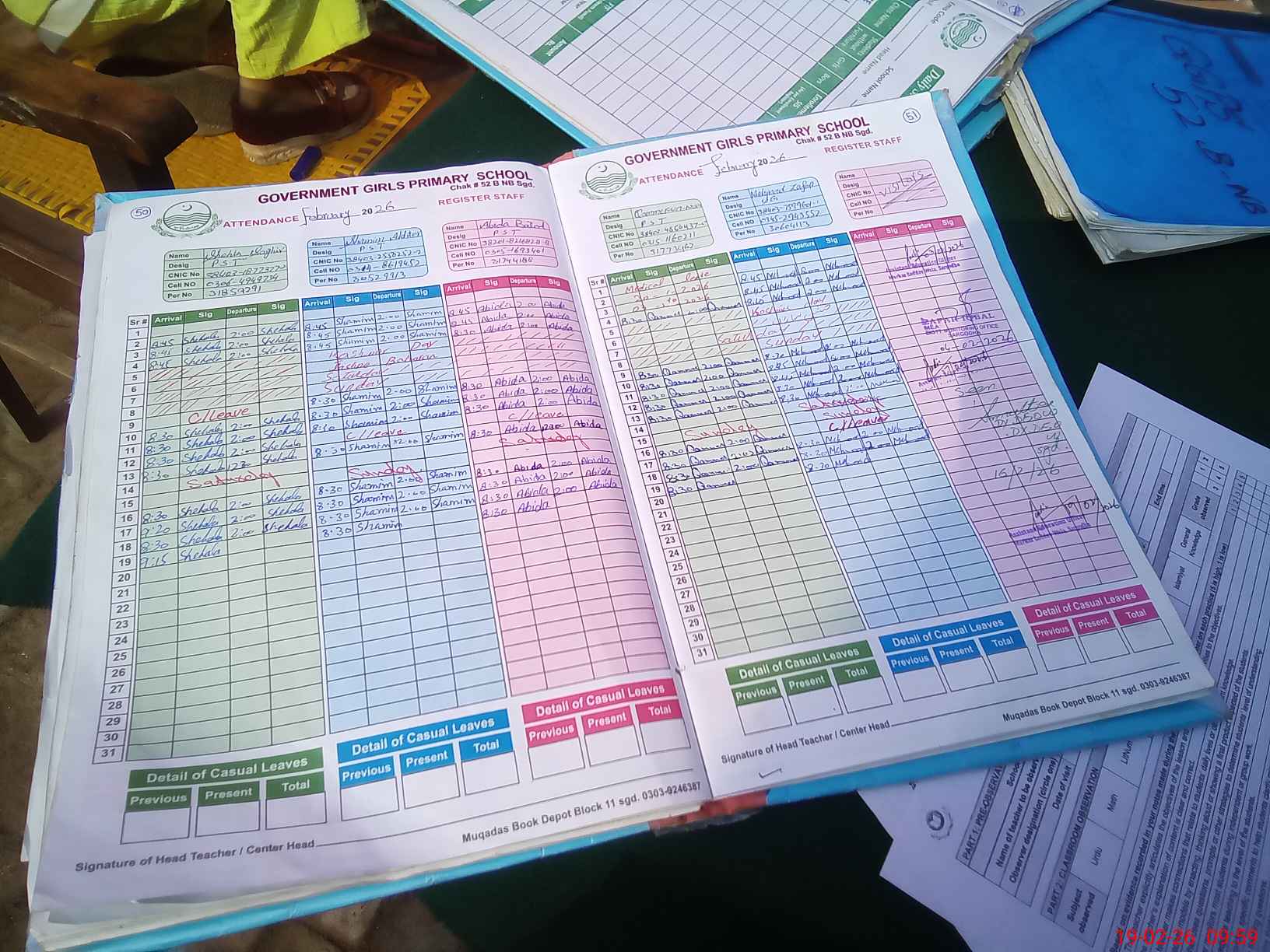 | CNIC | Full Name | Designation | R/C | Absence During Last Calender Month |