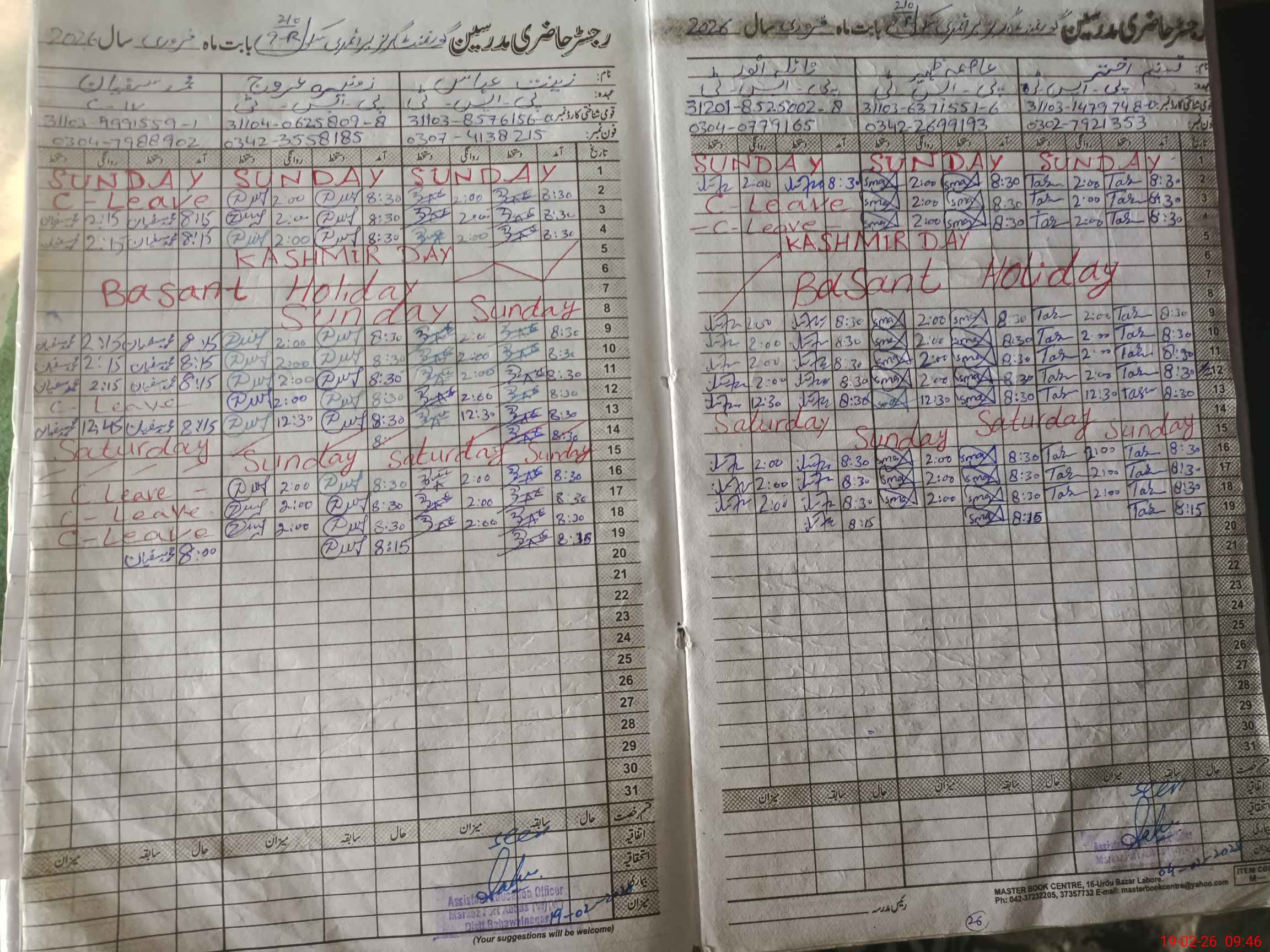 | CNIC | Full Name | Designation | R/C | Absence During Last Calender Month |