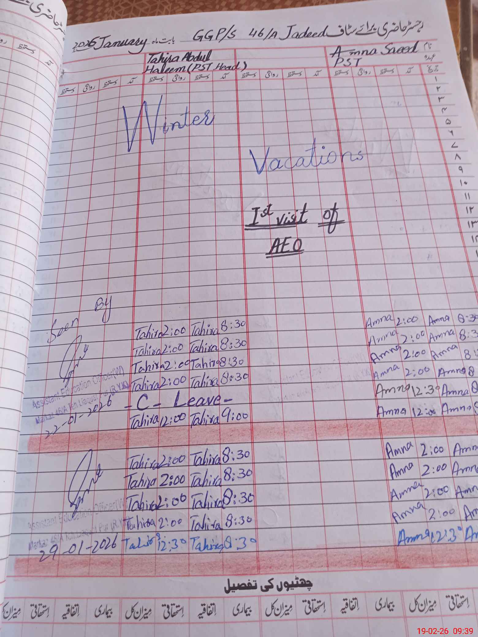 | Leave | Duty | Absent | Maternity | Medical | Ex- Pak |