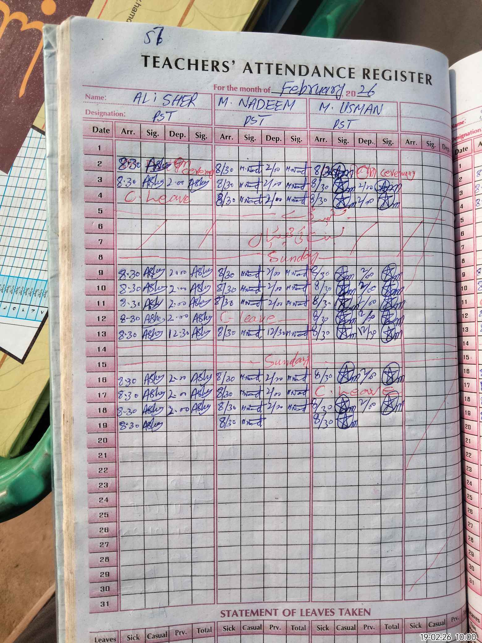 | Leave | Duty | Absent | Maternity | Medical | Ex- Pak |