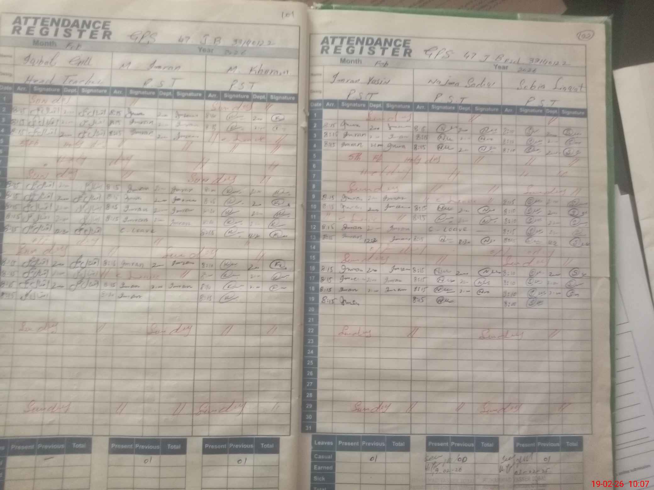 | Leave | Duty | Absent | Maternity | Medical | Ex- Pak |