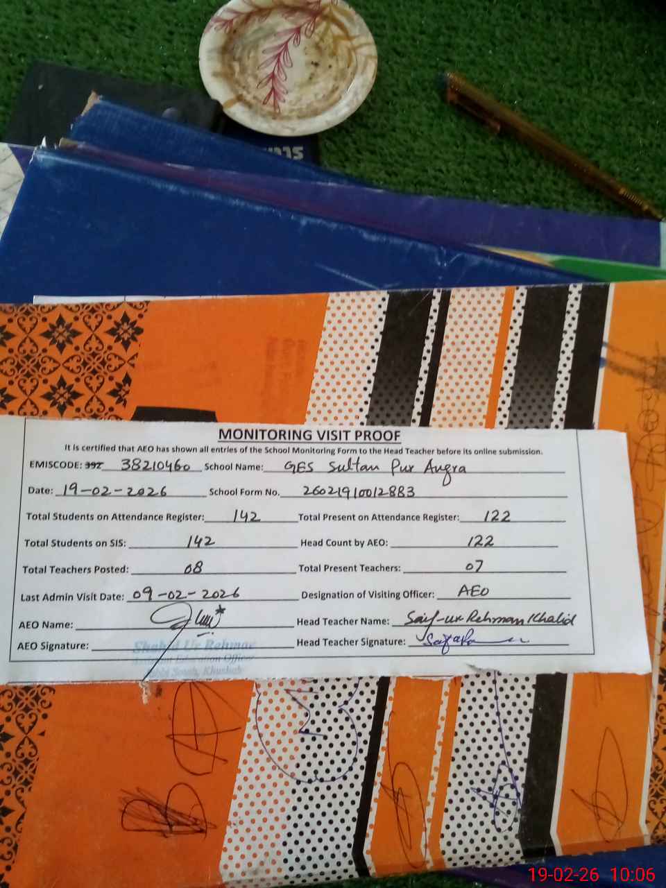 | Attendance Register | Head Teacher | MEA with School | Visit Proof |