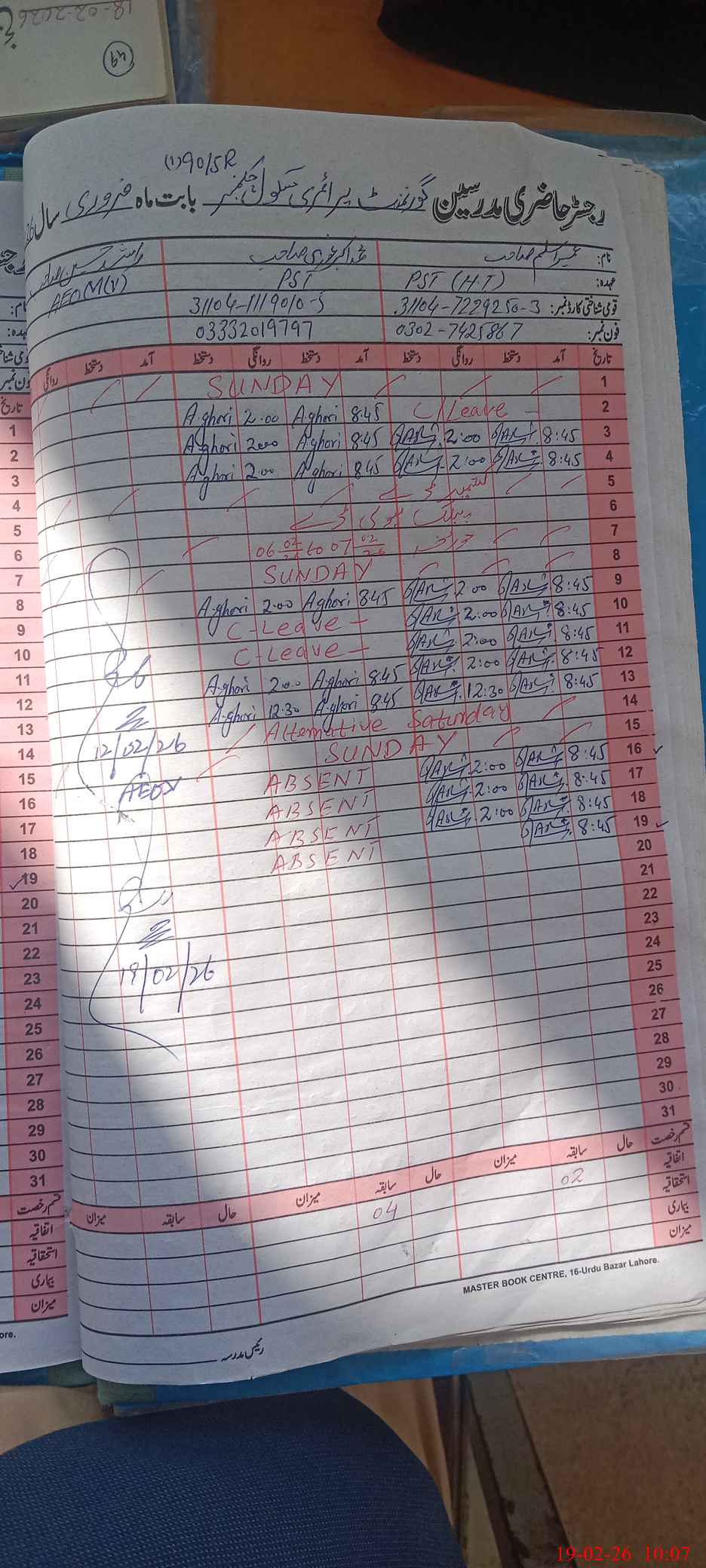 | 31**** | Mu**** Ak**** Gh**** | PST Science/Maths | Regular | 0 | 0 | 0 | 0 | 0 | 0 | 0 | 0 | 0 | Absent (Un-Authorized) |