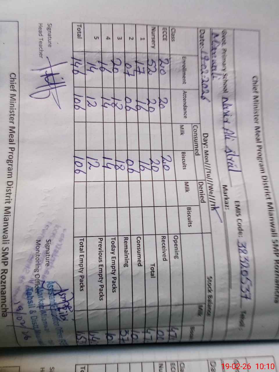 | District: MIANWALI | Tehsil: MIANWALI | Markaz: MIANWALI URBAN-FEMALE | Level: Primary | |