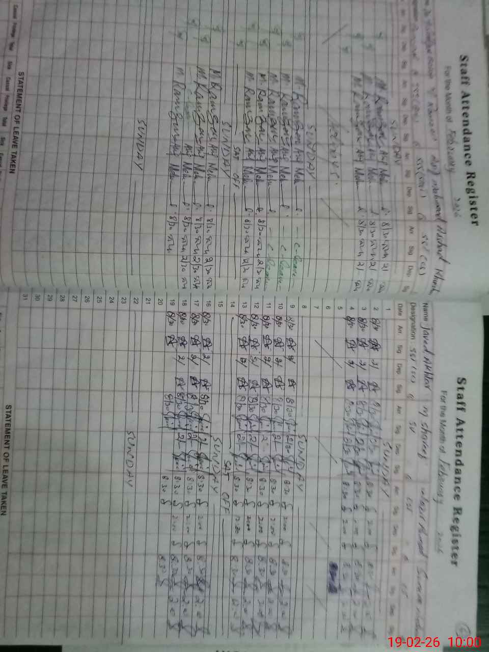 | CNIC | Full Name | Designation | R/C | Absence During Last Calender Month |