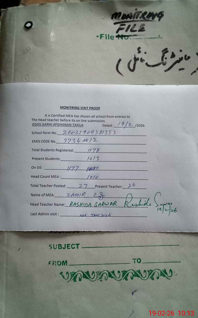 | EMIS Code: 37340012 | Name of School: GGHS GHARI AFGHANAN | |||