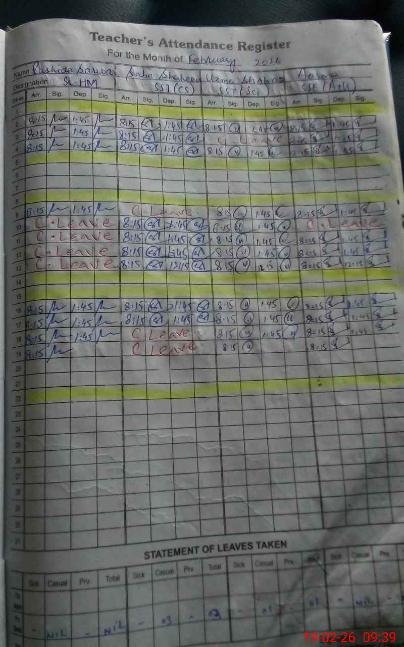 | Name: Ra**** aSa**** Designation: (School Headmaster's/Headmistress's) Sr.HEADMASTER Phone/Cell Number: 03**** |