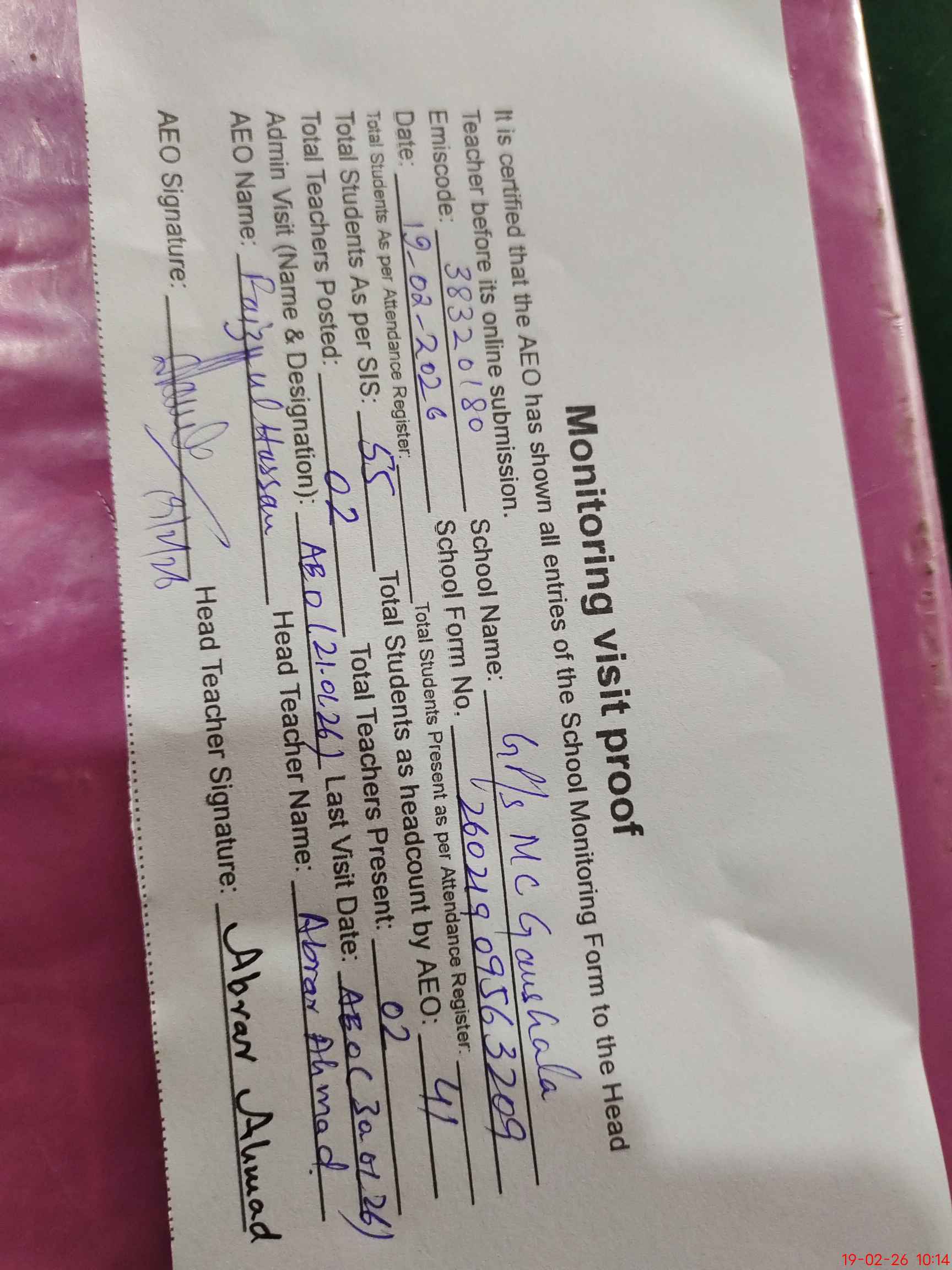 | EMIS Code: 38320180 | Name of School: GPS MC GAU SHALA | |||